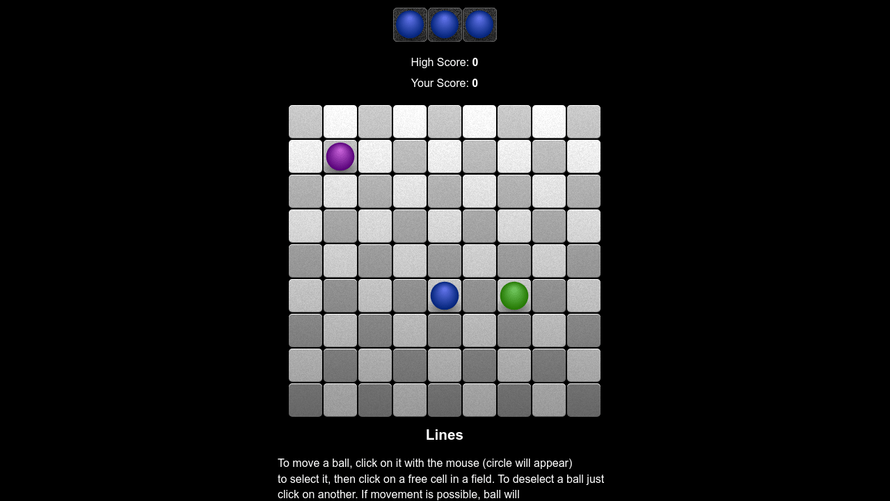 These lines are removed from the board and you get more. Click a ball, then click an empty square to move. Click play to start playing one of the world’s most popular puzzle games now!